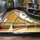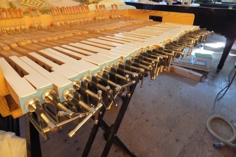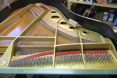 張弦終了! 新しい弦は伸びやすく狂いがでるので、お預かり中に何度も調律します。