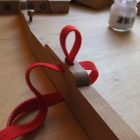 貼り終わってクランプで挟んで圧着させています(落ち着かせるためにも)が、その後の真っ白になった写真を取り忘れて、すでにアクションに戻してます^^;