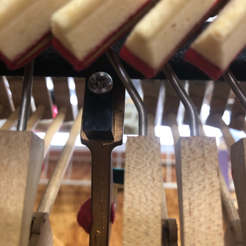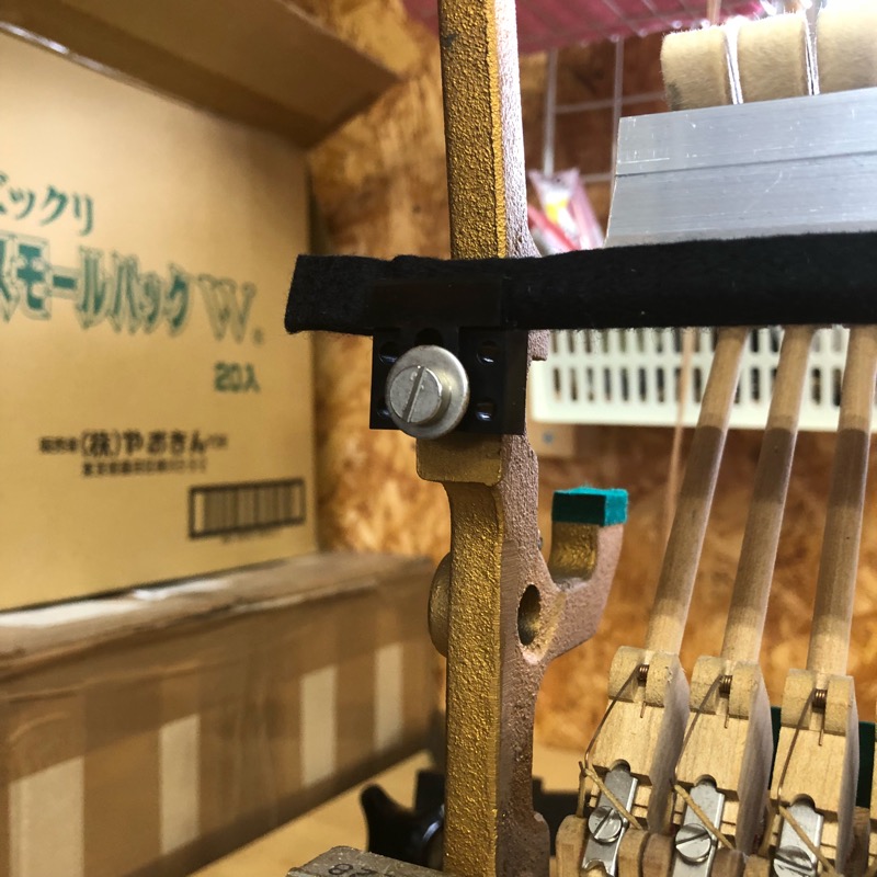 黒鍵下面から棚板までの距離でスプリング加工が必要です。今回は1箇所(計2個)スプリングを切断しました。これも楽勝!